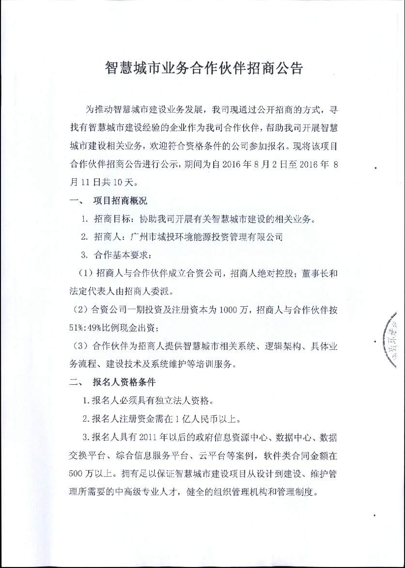 智慧城市业务合作伙伴招商公告